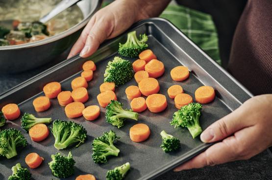 Égouttez et étalez-les sur une plaque de cuisson pour éviter que les légumes ne collent entre eux.