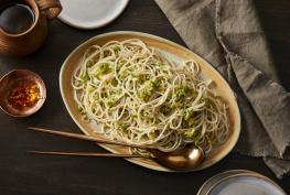 Salade de pêches, de pois chiches grillés et de fromage halloumi