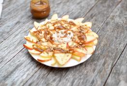 Nachos aux pommes avec sauce au caramel et au beurre d’arachides