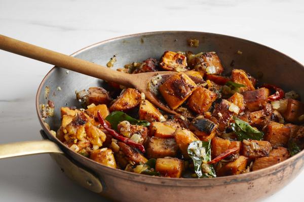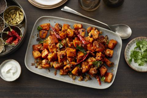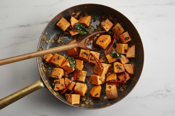 Ce cari est polyvalent! Vous pouvez facilement remplacer les patates douces par des carottes ou des courges. Servez-le avec du pain plat de grains entiers et du yogourt pour un repas rapide et facile.