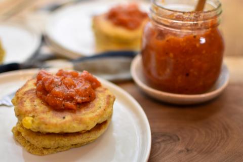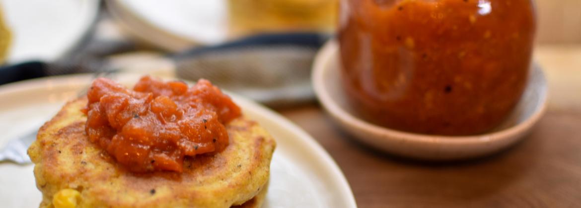 Galettes de maïs et confiture de tomates