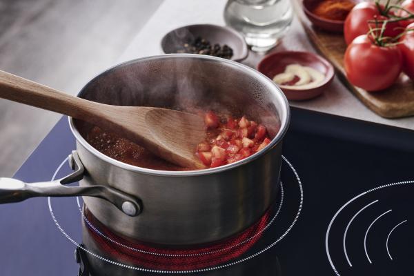2. Ajouter la tomate, le sirop d’érable, le vinaigre et l’eau. Mélanger.
