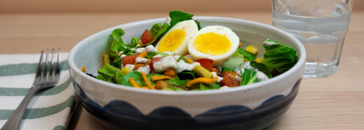 Cette salade est tout sauf ennuyeuse ! Elle est remplie de saveur et de protéines, ce qui en fait un dîner satisfaisant. De plus, elle est garnie d’une délicieuse vinaigrette ranch maison.