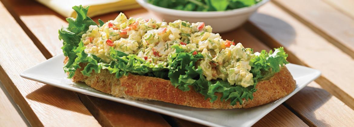 Déposer une feuille de laitue sur chaque tranche de pain et garnir du mélange aux œufs.
