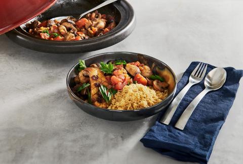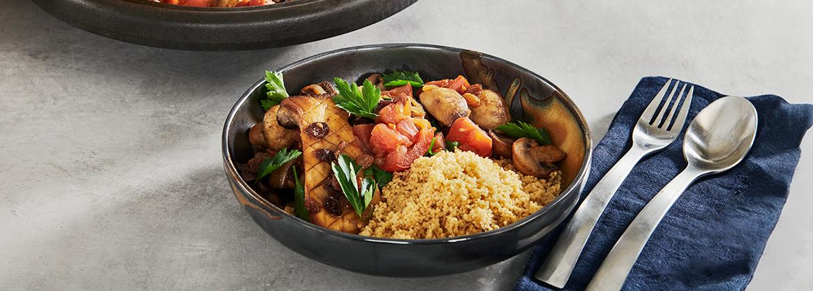 Cette recette d'inspiration marocaine est traditionnellement préparée dans un tajine, une marmite en terre cuite peu profonde avec un couvercle de forme conique, utilisée principalement en Afrique du Nord. La recette est pleine de saveurs mais elle n'est pas épicée - parfaite pour les enfants.